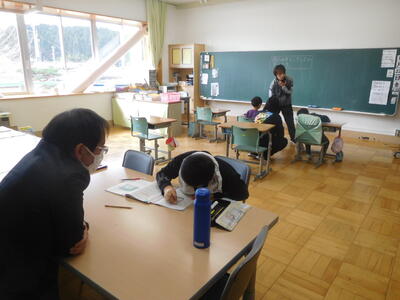 担任と支援員は学習の様子を見守りながら、個別指導をしてしていました。
