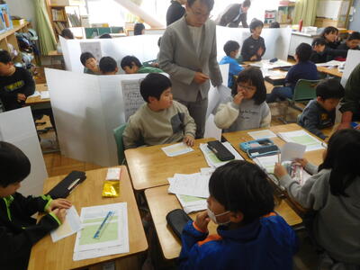 本日も、県中教育事務所の指導主事に来校いただき、算数科の授業について研修しました。