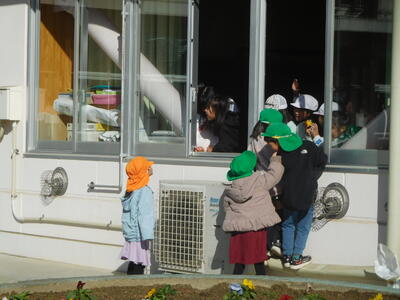 こども園のみなさんが、散歩で小野小学校まで来てくれたそうです。