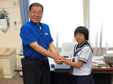 8月2日(木)午前11時30分、小野町役場町長室において、福島県中体連大会柔道競技で活躍し、東北・全国中体連大会に出場する吉田さんを、町長と副町長、教育長の前で報告しました。大和田町長から激励の言葉を頂きました。小野中の代表として、小野町の代表として、福島県の代表として頑張ってきます。