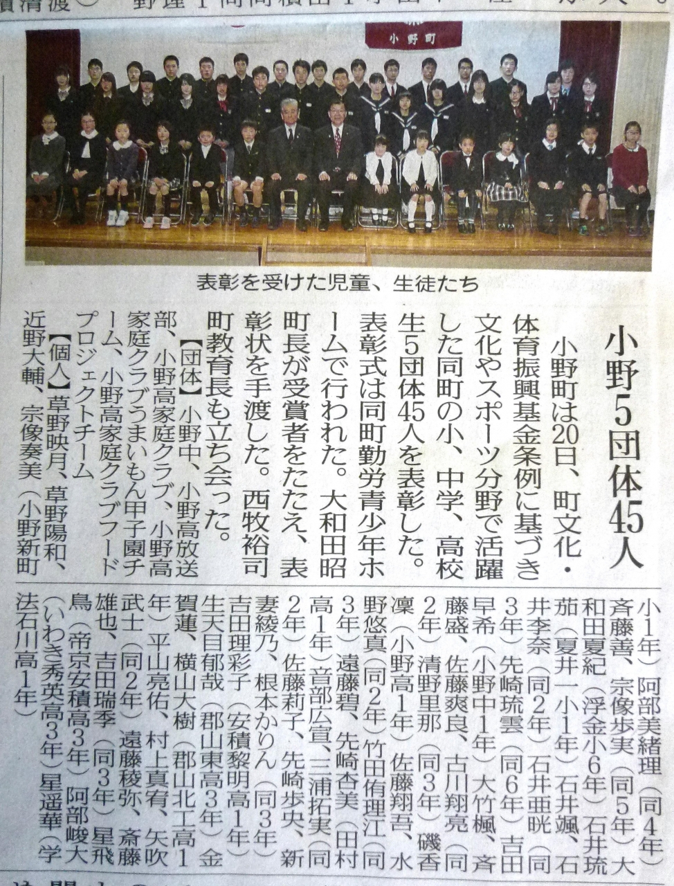 今日の福島民友新聞に、過日の表彰式の様子が掲載されました。