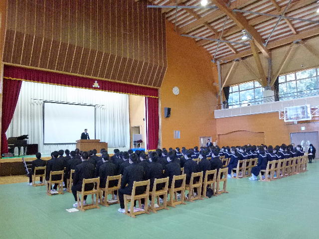過日、「東日本大震災を風化させない取組み」として、1年生は、「ハルをさがして」の映画の視聴、2・3年生は、「防災講話」と県P水俣市交流事業に参加者した郡司くんからの「意見・体験発表」を行いました。