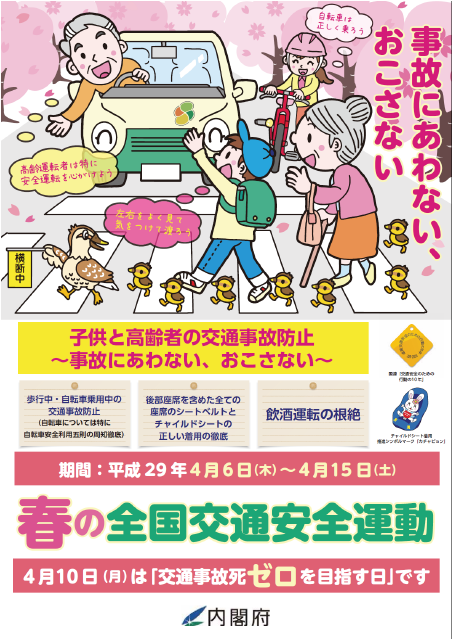 今日4日6日(木)から15日(土)まで、「春の全国交通安全運動」が始まりました。