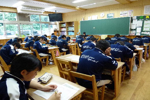 2016年7月4日 09時12分 今年度から、国語・数学・英語の基礎的・基本的な内容の確実な定着と、各種検定への学習意欲を喚起することを目的として「学習コンクール」を計画しました。その最初の学習コンクールとして先週「漢字コンクール」を行いました。内容は、今週末に行われるの「第一回漢字検定」をみすえて、1年生は5級、2年生は4級、3年生は3級程度の漢字の読み書き問題50問でした。