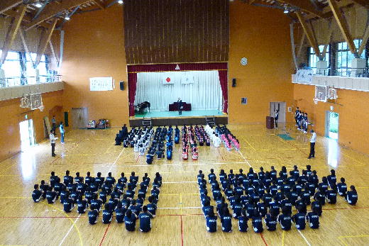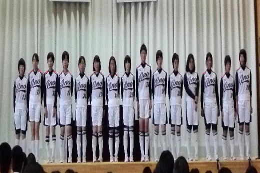 26日(木)に、田村支部中学校総合体育大会に出場する選手たちの激励会が行われました。吹奏楽部の演奏にあわせ選手たちは胸を張って体育館に入場。そして、各部の主将から大会に臨む決意表明と選手の紹介がありました。小野中生としての自信と誇りと感謝を胸に、夢への挑戦です!