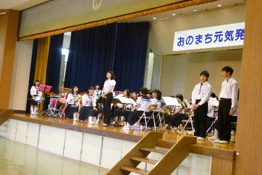 29日(土)に、本校吹奏楽部と吹奏楽部員の中の少年消防クラブ員が「おのまち元気発信パレード」に参加しました。パレードは、10:00からの開会式後に役場前を出発し、吹奏楽部員でもあり、小野中学校少年消防クラブ員でもある6名が行進しました。また、パレード後の「演奏会」では、小野高校吹奏楽部と共に本校吹奏楽部が素晴らしい演奏を披露しました。町民の皆様のあたたかいご声援ありがとうございました。