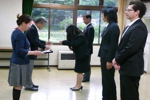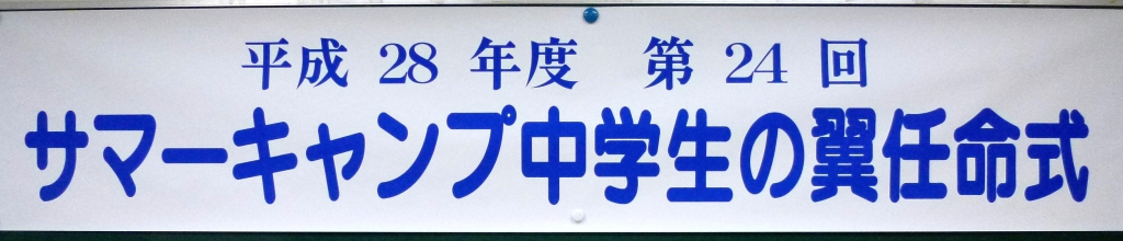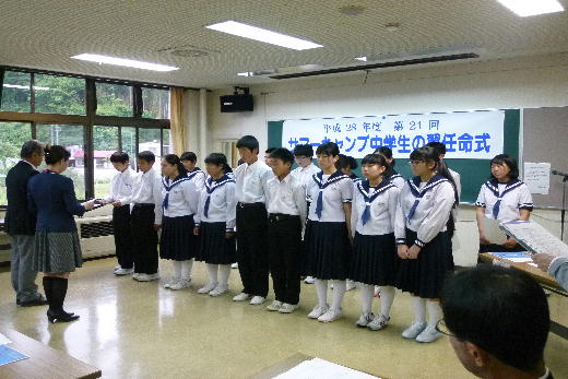 6日(月)に小野町・小野町教育委員会が主催する「平成28年度サマーキャンプ中学生の翼任命式」が行われました。式では、西牧教育長様より、男子7名、女子11名、計18名の団員と吉田団長様を含めた4名の引率者一人ひとりに任命書が手渡されました。