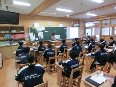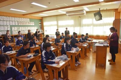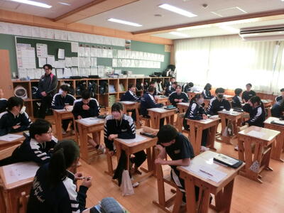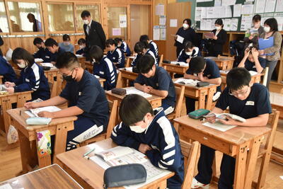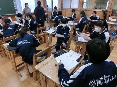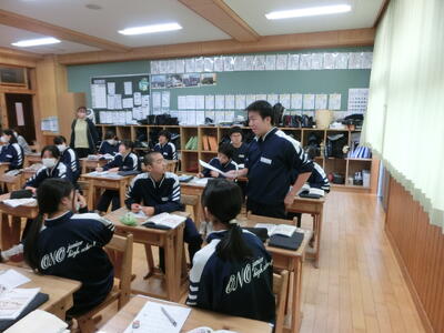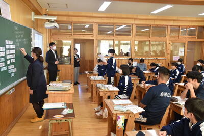 小学生時代にお世話になった先生方がたくさん参観しているので、生徒たちもいつも以上に気合が入っていて、元気に発言したり、活発に話し合いを行ったり、一生懸命に授業に取り組んでいました。