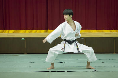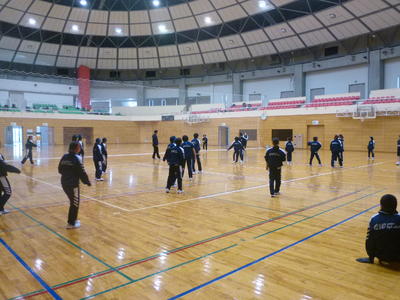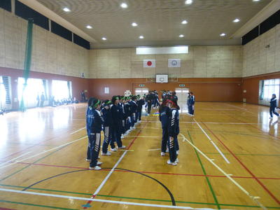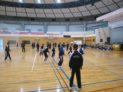 3学年は会場を2つに分けて実施、1,2年生は合同で体育館で実施します。