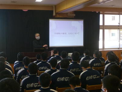本日1年生は、小野町観光協会会長の二瓶さんをお招きして、総合的な学習の時間において、地域についての学習(小野町の歴史・文化について)を行いました。