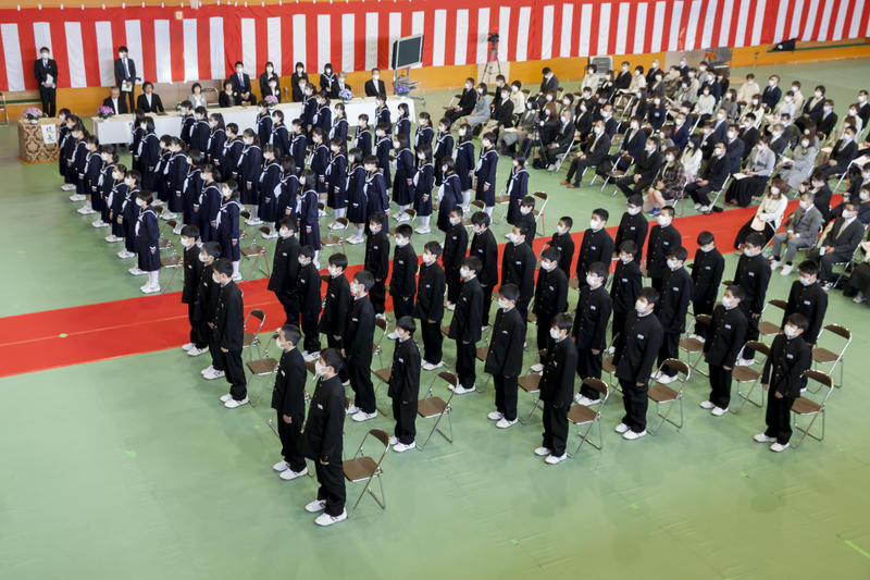 令和2年度の入学式が行われ、町内4つの小学校からあつまった新入生81名が晴れて小野中学生になりました。