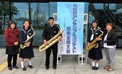 催され、本校吹奏楽部の1チーム「サックス三重奏」がコンテストに臨みました。右の写真は、演奏前お昼過ぎに撮ったものです。いい表情をしています。本番はすてきな演奏でした。結果はわかり次第お知らせします。昨日・今日と演奏した3チームの生徒の皆さんすばらしい演奏をありがとう!