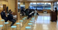 演奏を聴き終えて、すぐに学校に戻り、各学年の学年懇談会の様子を見学しました。1学年は、学習面について鈴木慶一先生から「家庭学習のポイント」の話でした。2学年も、学習面について箭内先生から「進路対策教材」の話でした。3学年は、冬休みの学習・進路について北野先生から「冬休みの課題等」の話でした。各学年ともお忙しい中、20~30名の皆様の参加をいただきありがとうございました。