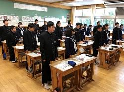 12月13日(金)は今年最後の「あいさつ強化デー」でした。強化デーではあいさつ日本一の学校を目指して、運動の増員も活動の一つです。生活委員だけでなく、生徒会役員と各学級委員で行っていましたが、今日は柔道部5名が運動に参加し、明るく元気な挨拶を行っていました。柔道部の皆さん、ありがとう!また、朝の挨拶は、全校放送で一斉に行いますが、今日は1年3組の様子を見学しました。笑顔で「おはようございます」とあいさつを行いました。あいさつ日本一への取組は始まったばかりです。令和2年のあいさつ強化デーは1月はなく、2月13日(木)と2月25日(火)、3月13日(金)「卒業式」の3回だけです。全校生で出来るのは2月の2回だけなので、「チーム小野・ワンチーム」で「あいさつ日本一の学校」を目指しましょう。