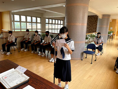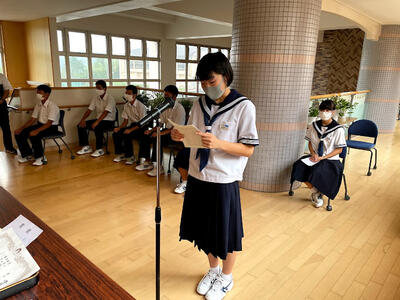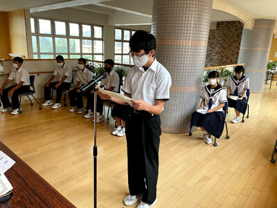 また2学期に向けての抱負を学年代表が発表し、夏季休業にに行われた大会等の表彰を行いました。