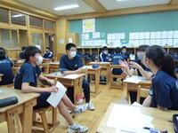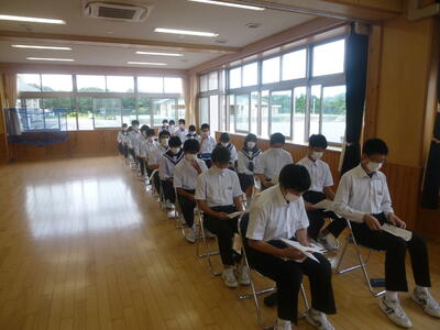 9月を迎え、昨日まで一丸となって努力を重ねてきた駅伝部が解散しました。3年生は運動部引退です。これからは各学級で合唱や受験に目標を切り替えて生活します。そして、今日の授業では各学級で級友と夏の思い出を語りあいました。