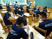 今日は開講式で、講師から「11月の三者面談で志望校を決めるために、9,10月で結果を出さなければなりません。そのためには、この夏休みが本当に大事です。」いう話がありました。3年生は真剣なまなざしで聴いていました。