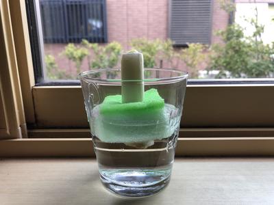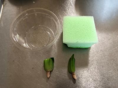 やったこと・・・スポンジに切れ目を入れへたの部分を差し込み、水を入れた。