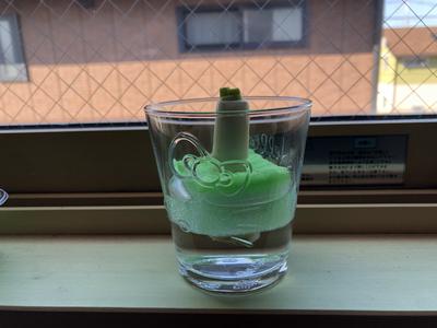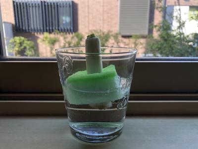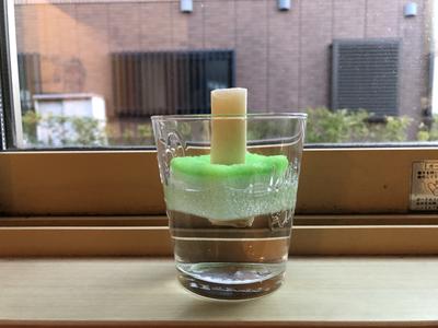 ほうれん草が再生しそうにないと感じたので、新たな挑戦を始めました。今度は「長ねぎ」に挑戦です。