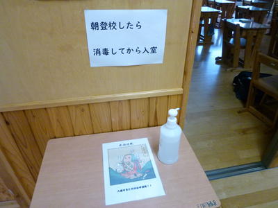 さて、本日は来週からのみなさんの登校に備えて、玄関を新たにワックスがけをしました。18日に登校したときはピッカピッカの鏡のような床をぜひ見てくださいね。