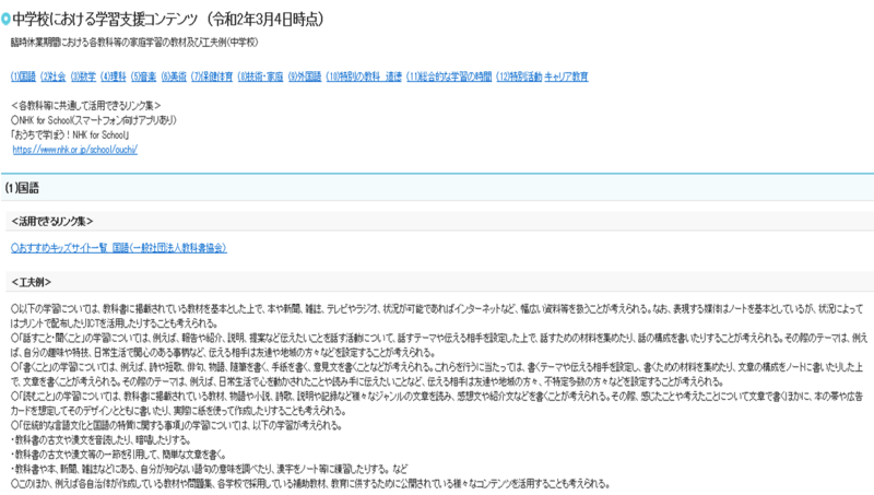 ※ 画面を開き、中学校をクリックすると教科ごとに活用できるリンク集が出てきますので、活用してみてください。
