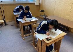 ※ 右の写真は1月24日、一次試験にのぞむ準2級3名の2年生です。