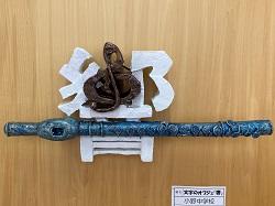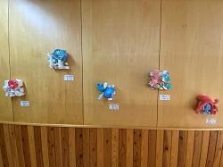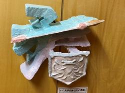 昇降口から保健室、多目的ホールに続く廊下の壁面に2学年の美術の作品<立体>が飾られました。美術の佐藤先生が3月9日に丁寧に飾っていました。漢字をデザインして紙粘土で形をつくり彩色した立体作品です。「海」「響」「結」「雪」「夏」などの1文字がほとんどですが、「矛盾」という2文字を「矛(ほこ)」と「盾(たて)」をうまく組み合わせて1つのデザインにしたものなどすばらしい作品が並びました。13日(金)に登校したときに見てくださいね。2年生、すてきな作品、すばらしいですよ。