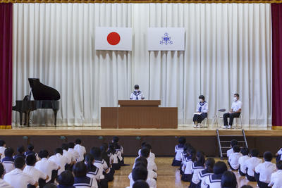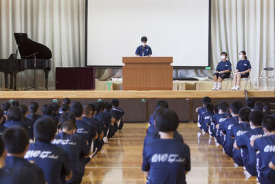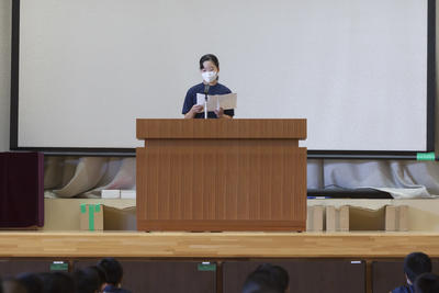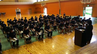 ひとつは「笑顔」でした。このような時だからこそ、みなさん自身や学校のみんなが笑顔で生活できるように考えた行動をしてくださいと、お話をしました。さて。どうでしたか?笑顔で生活できましたか?、自分だけではなくクラスのなかま、部活動のなかまなど、周りのみんなが笑顔でいられるようにするためにはどうすればいいか。それを考えて実践してくださいというお話もしました。私自信も、校長としてみなさんや先生方みんなが笑顔で学校生活を送れることを目標にしています。1学期の大切な行事が中止になるなどとても残念なこともありましたが、2学期も笑顔で生活できるようにみなさんと一緒に取り組んでいきたいと思います。