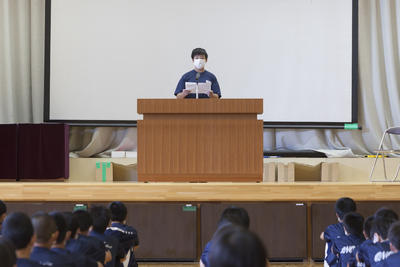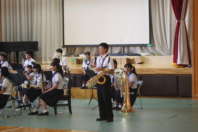 コンクールが全て中止になってしまった今年度ですが、一生懸命に練習してきた成果を全校生徒と吹奏楽部の保護者の皆様の前で披露しました。