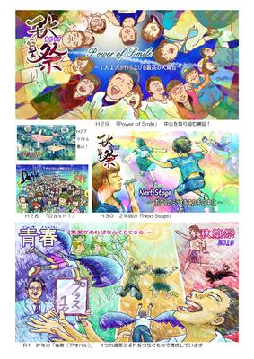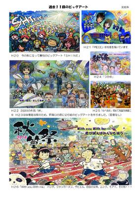 小野中学校のWebページの所々に、夏休みの課題となっている文化祭ビックアートの過去の作品を掲載しました。歴代の生徒の素晴らしいアート作品をぜひご覧ください。