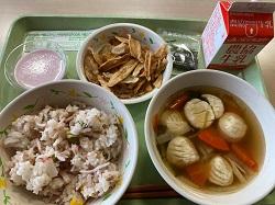 みなさん。今日は、美味しそうな豪華メニューがそろっていますね。実は、今日の給食も、今年ご退職される校長先生の希望献立です。この企画の最後は、小野中学校大河原校長先生の希望献立です。大河原校長先生は、行事食や新メニュー、手作りメニューの日に、給食の写真と感想を小野中学校のホームページに載せて紹介してくださっていました。給食を作っているセンターの調理員さんを常に近くで気にかけてくださいました。そんな大河原校長先生がリクエストされたメニューは、小野町の特産品「黒にんにく」と「黒毛和牛」を使った小野町給食センターオリジナルメニュー「黒にんにくピラフ」です。その他にも小・中学生が喜んでくれるおかず、汁物、そしてミルメークを選んでくださいました。【スクールランチNewsより】