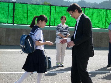 また、本校PTA厚生委員会によるあいさつ運動も昨日から明日まで昇降口前で行われています。生徒たちは大勢の人にびっくりしながらも笑顔であいさつを交わしていました。