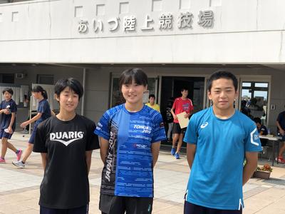 8月31日(土)、あいづ陸上競技場において、県ジュニア陸上競技選手権大会が行われ、男子A200mに瀬谷さん、女子A100mに佐藤さん、女子A砲丸投(4kg)に根本さんの3名が出場しました。瀬谷さんは昨日は駅伝大会にAチーム6区の選手として出場、3位でたすきを受け区間賞の走りで2位の常葉中を折り返し後の上りで抜き1位の船引中に迫る走りを見せました。疲労が残る中で、200mに出場、入賞はできませんでしたがすばらしい走りでした。佐藤さんは予選13秒47で決勝に進出、決勝は自己ベストの13秒34で4位入賞のすばらしい走りを見せました。根本さんはこの大会で優勝し、全国大会出場が目標です。中体連で果たせなかった夢への挑戦。2投目、やりました。大会新記録の10m75で優勝です。夢が叶いました。本当に頑張りました。子どもたちの夢への挑戦をこれからも応援していきます。