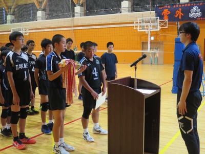 8月31日(土)、田村地区秋季中学校バレーボール大会が行われ、男子は優勝、女子も2位とよく頑張りました。来週は県南選手権大会と大会が続きます。本気、覇気でまた頑張りましょう。応援しています。