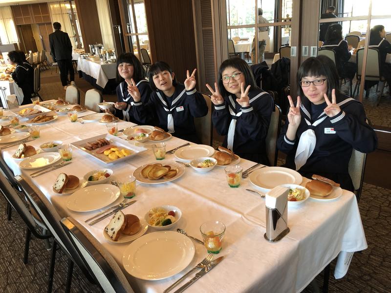 おはようございます。多少の疲れは残っているもの、時間前に集合しています。来た班から朝食を食べ始めました。ではいただきます。