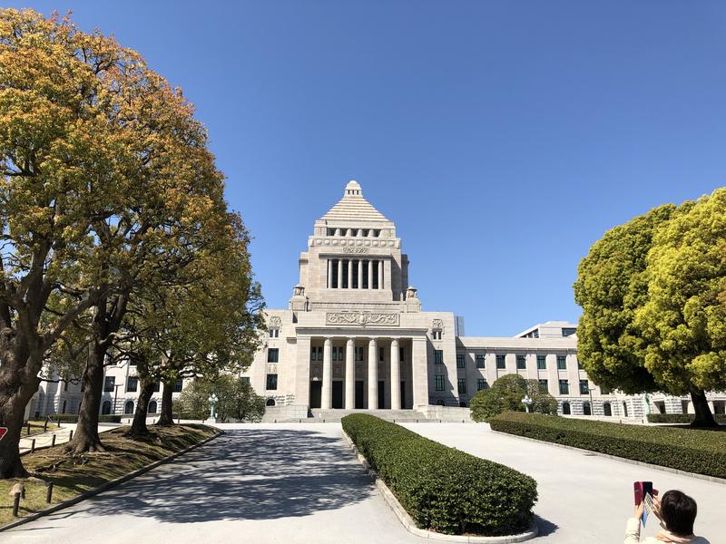 4月13日、修学旅行最終日、国会議事堂に向けてホテルを出発しました。お天気最高です。みんな元気です。