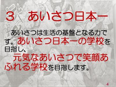 ○今回、校長先生が読んでくださった「いいおかお」と「教室はまちがうところだ」は今年の目標となりました。1年間いいお顔であいさつ、間違ってもいいから意見を言うという目標です。昼休み遊びに行きます。