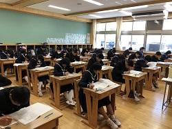 【写真 左:国語 3年1組  中:数学 3年2組  右:英語 3年3組】