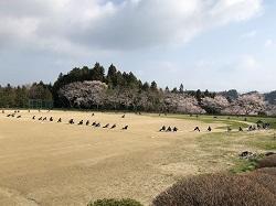 【写真 左:特設陸上部の子どもたち(朝から頑張っています)  中・右:三春 滝桜】