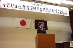 ◎ ただ今、同窓会長様より、同窓会入会の言葉をいただき、私たち101名は、晴れて伝統ある小野中学校の同窓会員にになりました。私たちは、中学校生活で育んだ絆は途切れることがないと信じ、希望を胸に卒業後も互いに励まし合い、小野中学校の卒業生としての誇りを持ち、そして、大河原校長先生が話してくださった「プラス1」の精神を忘れずに日々生活して行きたいと思います。また、先輩方と協力して、母校、小野中学校がますます発展するように努力することを近い、代表の挨拶といたします。