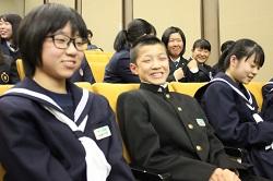 ※ 1年生は、映画「ハルをさがして」に関する講話をいただき、映画を視聴しました。この映画は、小野町、いわき市で撮影が行われた、中学生を主人公とした映画です。東日本大震災後、故郷を出て行かざるを得ない人、残らざるを得ない人がおり、その狭間で揺れる中学生が描かれています。
