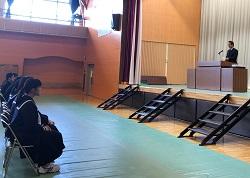 今日の「3.11を忘れない集会」は6校時、2・3年生を対象に多目的ホールで行いました 。亡くなった方のご冥福を祈るために全員で黙とうをした後、校長が映像を交えながら話をしました。