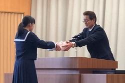 2月10日(日)、福島県教育会館大ホールにおいて、第63回福島県書きぞめ展表彰式が行われました。個人賞で、2年の吉田さんと3年の長久保さんが「書きぞめ準大賞」をいただき、賞状とトロフィーが授与されました。おめでとうございました。