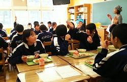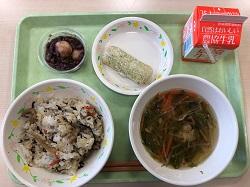 3学期がスタートして何よりも楽しみなのは、おいしい給食がスタートしたことです。初日の8 日(火)は、年明け最初の給食ということで、行事食が用意されました。1月11日は「鏡開き」です。お正月にお供えした鏡餅を割って、雑煮やお汁粉にして食べ、新しい1年の出発の日とし、家族の健康をお祈りします。そこで、給食には、つぶあんのお汁粉、「ぜんざい」がついたのです。調理員さんが朝早くからじっくりおいしく煮てくださいました。上品な甘さでとてもおいしかったです。いつもおいしい給食ありがとうございます。感謝の心で毎日「いただきます」。