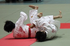 【写真 秋田県立武道館(秋田市) 予選1 宮城県2位の選手との対戦 大内刈りで一本!】
