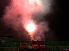 8月15日(水)おのまち「夏まつり」の最後を飾るのは「花火大会」です。花火を小野中学校校庭で打ち上げるために、教頭先生は朝から夜まで校舎を管理したり、午前中には商工会の方がプールにゴミが入るのを防ぐためにプール全面にビニールシートを引いたり、打ち上げ時には、消防団の方々が大勢待機したりしていました。花火を見て多くの方が笑顔になったと思いますが、美しい花火を陰で支えるたくさんの人々の努力を忘れてはなりません。ありがとうございました。校庭から打ち上げられた花火はとてもきれいでした。皆さんもご覧になりましたか?来年の「夏まつり」も夏らしい暑い日になるといいですね。