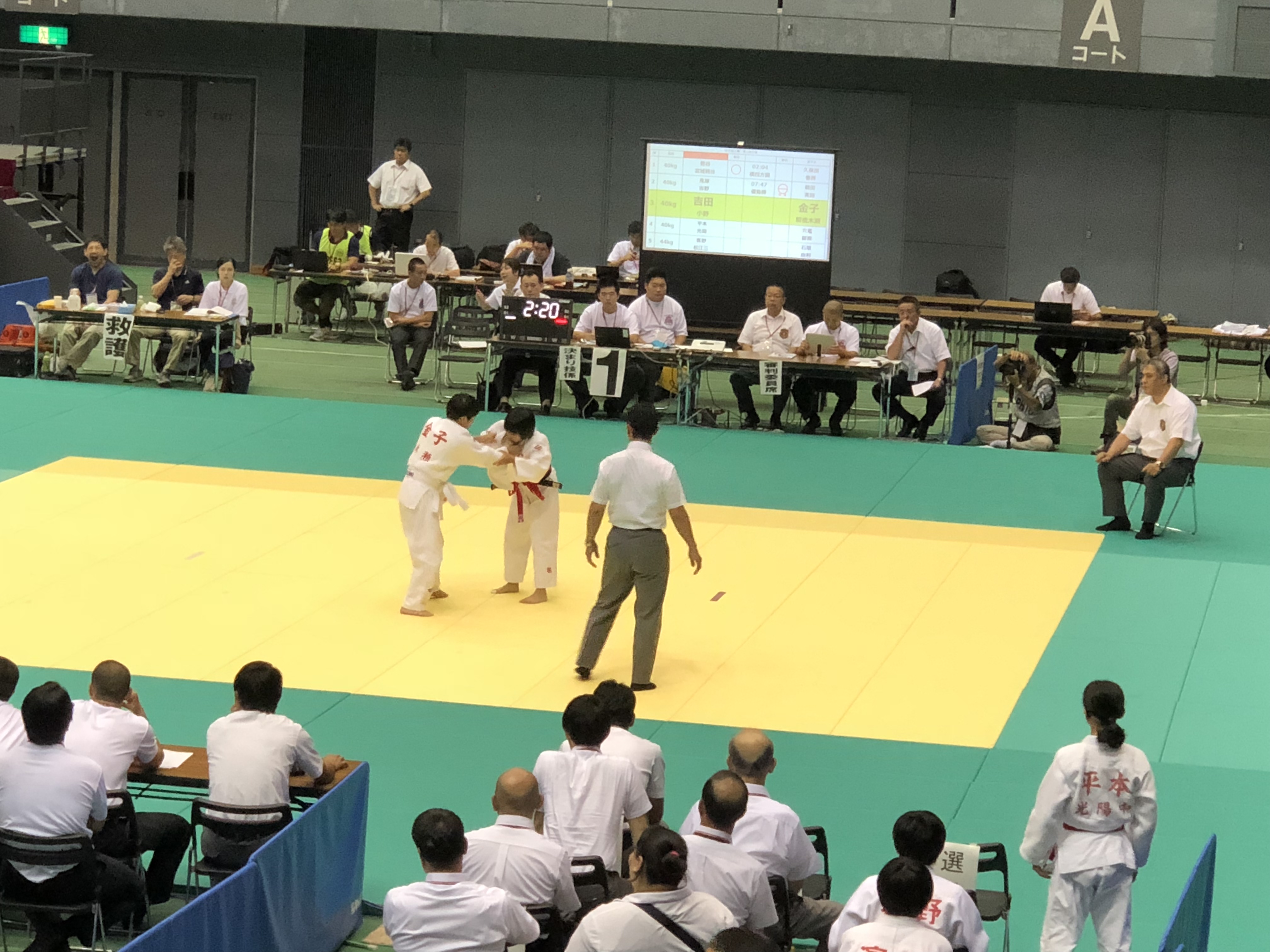 8月19日(日)、広島県立総合体育館において、第49回全国中学校柔道大会女子個人戦が行われ、3年吉田さんが福島県チャンピオンとして出場しました。対戦するのは群馬県チャンピオンです。試合終了間際に得意の背負い投げで技ありをとり、そのまま終了。全国1勝です。2回戦は静岡県チャンピオンとの戦いです。頑張れ