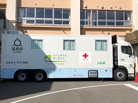 今週一週間をかけて、福島県労働保健センターの方に来ていただき、県の移動検診車で内部被ばく検査を実施しています。本校では約95%の生徒が希望しています。一日2クラスずつ実施しており、明日は2年3組と1年1組、6日の最終日は1年2組と3組です。写真は、初日に行われた3年2組の様子です。