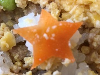 今日の給食は七夕に合わせて、星の形の食べ物を3種類使用し、七夕の夜空を表現して作りました。夏の夜空を想像しながらいただきましょう。【スクールランチニュースより】
