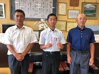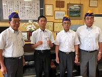 また、ライオンズクラブと小野町・田村市・三春町野球協会審判部から福島県中学校体育大会軟式野球競技に出場する野球部に激励金が贈呈されました。野球部を代表し大和田主将が受け取りました。大切に使わせていただきます。ありがとうございました。